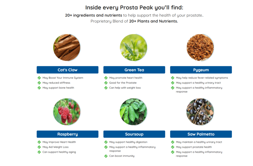 What truly won me over with ProstaPeak is its ingredient list—a real nature’s task force with over 20 essential components, focused on delivering maximum prostate support. It’s a formulation that demonstrates research and commitment to quality. Here are some of the “super-ingredients” that make the magic happen: